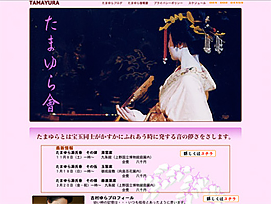 日本舞踊のたまゆら會のホームページ制作です。美しい舞台上の写真をスライドショーにしてその雰囲気を演出しました。