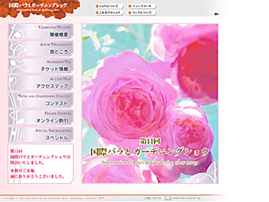 バラとガーデニングの大きなイベントのホームページを制作しました。色々せず美しい薔薇の花のインパクトを大事にしてみました。