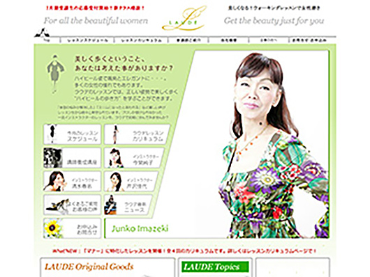 ウォーキングスクール Laudeのホームページ制作をしました。トップページを大胆にFLASHにして動きのあるものにしました。