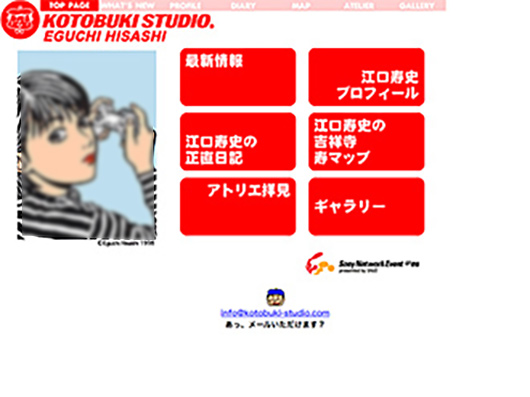 漫画家・イラストレーターの江口寿史さんの事務所、KOTOBUKI STUDIOのホームページを制作しましたご本人の希望のデザインです。