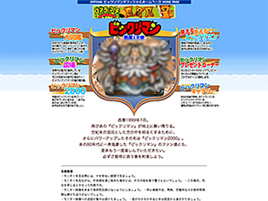 ビックリマン 2000、ビックリマン 2001とデザイン&制作をさせていただきました。メニューボタンにマウスオーバーを仕込んで中央の絵を切り替えました。